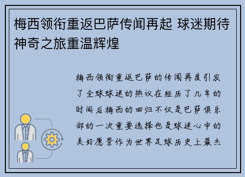 梅西领衔重返巴萨的传闻再度引发了全球球迷...
