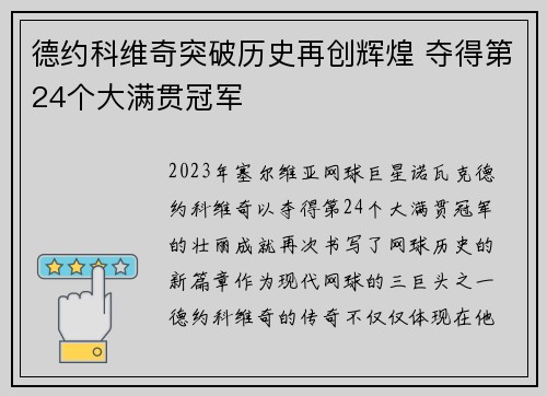 2023年,塞尔维亚网球巨星诺瓦克·德约...