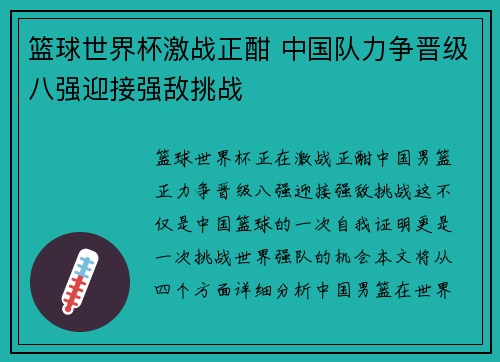 篮球世界杯正在激战正酣,中国男篮正力争晋...