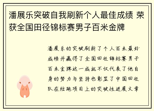 潘展乐的突破,刷新了个人百米最好成绩,并...